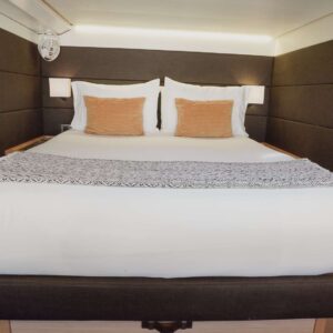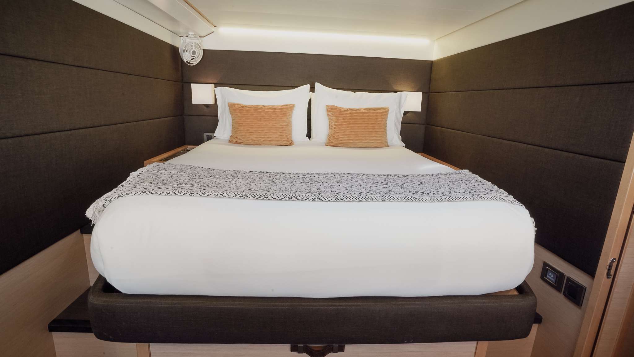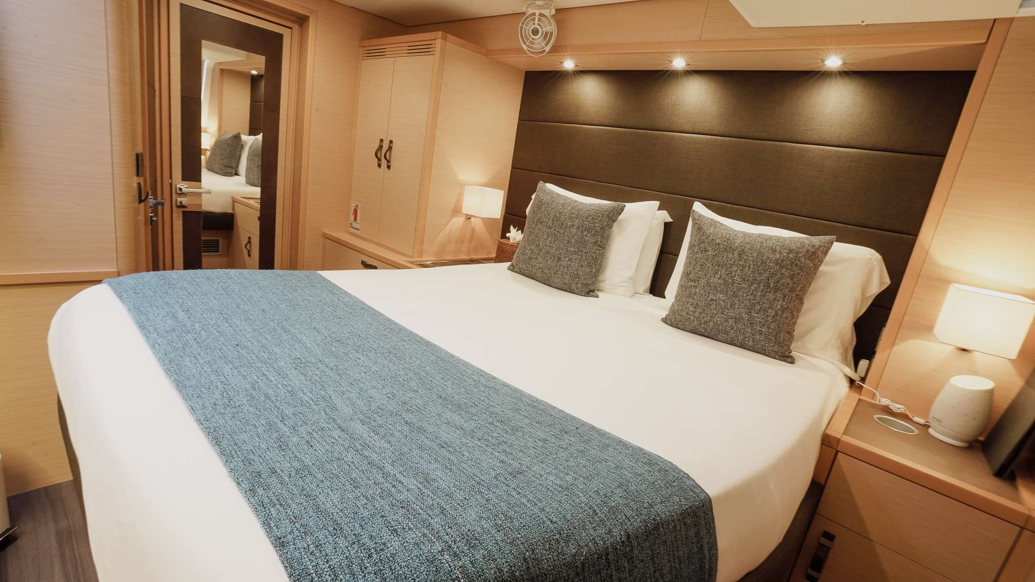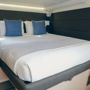 Sailing vessel Seahome is a 2016 Lagoon 620 catamaran, featuring Lagoon’s stylish upgraded Essence decor. She is spacious and elegantly appointed with a sprawling interior that features luxurious leather accents throughout. Seahome hosts up to 10 guests in five queen-sized, air- conditioned cabins. The headroom is 6’9ʺ and all the beds are fitted with custom made memory foam mattress for the ultimate restful experience at sea. Each cabin has its own, private en- suite bathroom with a separate shower and soft, fresh towels.