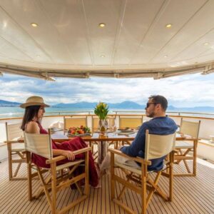 The most enjoyable outdoor area of the yacht is definitely the sundeck, equipped with solariums, an additional outdoor dining option for 12 and a kitchenette with wetbar and grill.