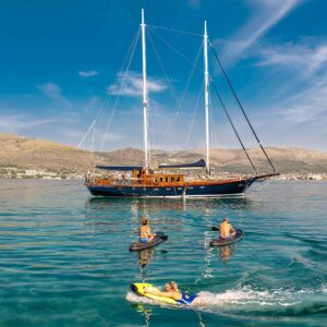 CAPTAIN - ONJEGIN FABRIS Meet our captain, Onjegin, with almost two decades of experience in yachting. He's proficient in everything from navigation, mechanical work, and the upkeep of the beautiful woodwork to crew management, itinerary planning, and entertaining the guests. He knows every bay and will ensure you have the time of your life. CHEF - DALIBOR KIMCETIĆ Meet our esteemed chef, Dalibor, whose expertise spans the globe. With a rich background as Private Chef at the Egyptian, Argentinian, and Angolan Embassys and regular engagements around Europe and hotels such as Hyatt Regency, our chef brings a wealth of international flavors. He's especially passionate about crafting Serbian cuisine with a modern twist, which he is regularly invited to showcase in cities like Cannes, Paris, and Moscow. A published author of "Encyclopedia of Taste" and a member of "Chefs for Life," a solidarity group comprising top-tier Chefs, Pastry Chefs, and Master Bakers, has orchestrated captivating humanitarian evenings since 2019.