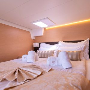 Lagoon 560 S2 “TOPAZ”, offering an exquisite experience for up to 10 guests in 5 cabins. With dedicated crew – skipper and stewardess accommodating your needs, enjoy the ultimate comfort and relaxation.