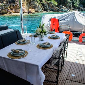 Fluent in five languages, they cater to an international clientele with ease, ensuring that communication is seamless and guests feel at home. Their expertise and hospitality are the cornerstone of the Valinor experience. While Valinor operates with just two crew members, we assure you that our service level matches that of a three-member crew. This setup is our personal preference to ensure a more intimate and less crowded environment for our guests with a 5-star service that exceeds expectations!