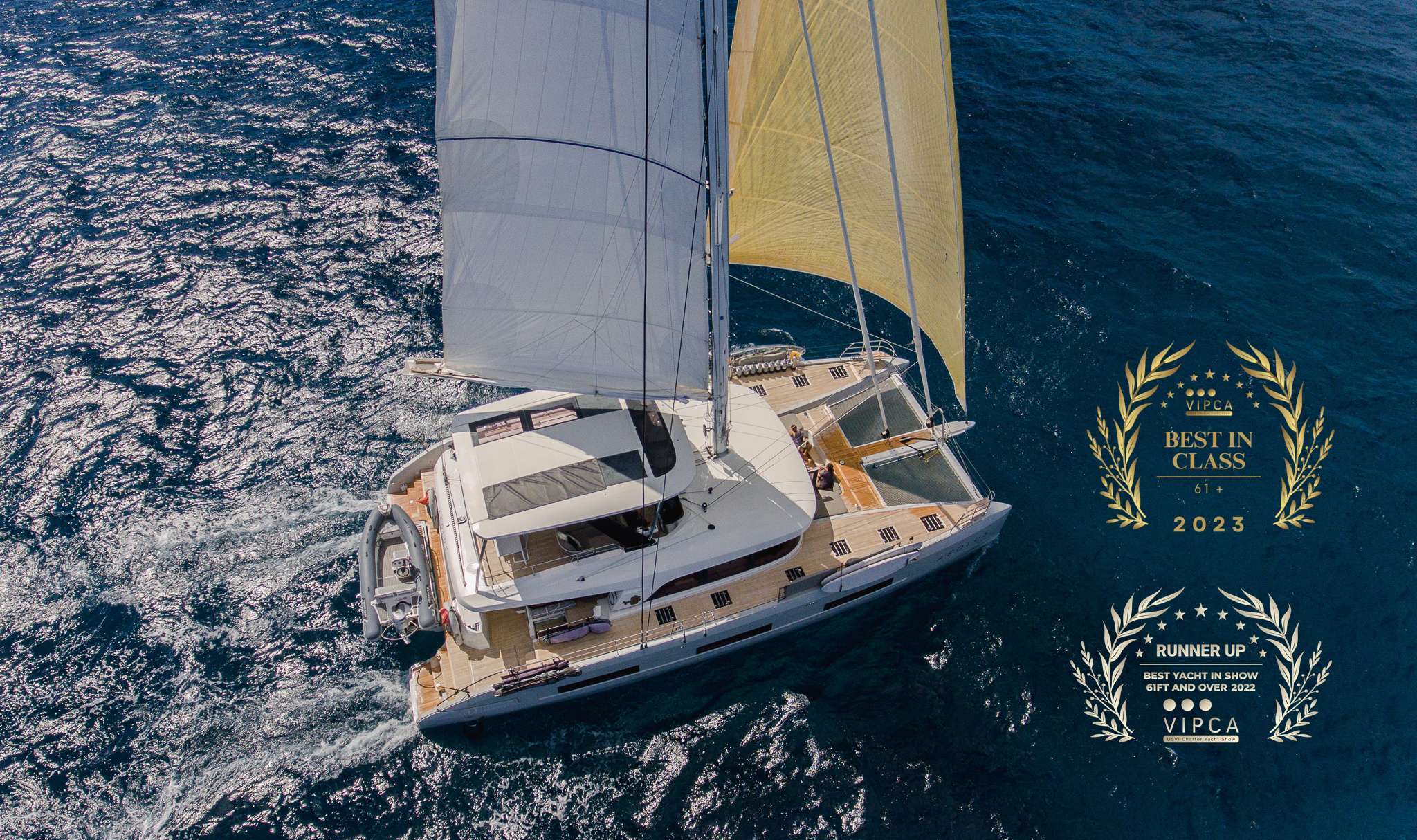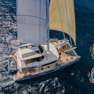 With its slender hulls and sculptural curves, the Lagoon SIXTY 5 has rightly earned its place in the world of luxury sailing yachts. The secret of its beauty lies in the sensual lines. They are an alliance of both tradition and modernity that orchestrate its generous proportions.