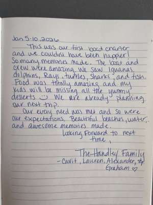 We had an amazing time. The captain and chef took great care of us. The food was absolutely awesome, and I swear we all gained 5lbs!! Candela was super attentive and kept us well fed. Captain Tim made great suggestions when it came to our activities and was super flexible when we decided we wanted to stay at a certain spot longer. We felt well taken care of the entire time.