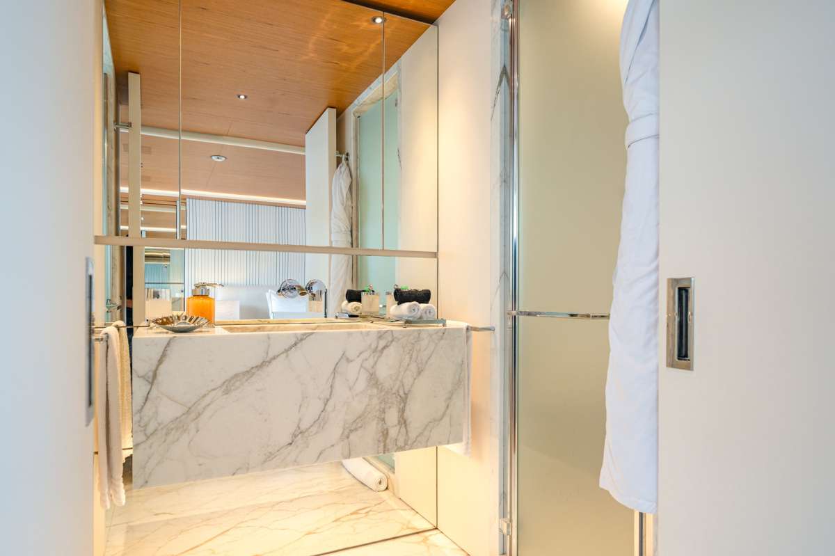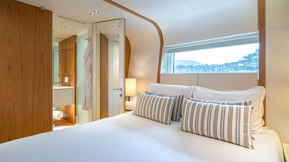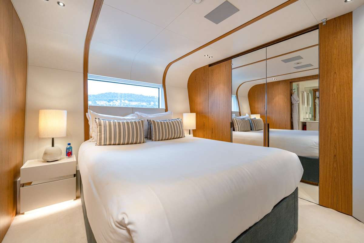 ALLURIA offers luxurious accommodation for up to 10 guests across 5 beautifully appointed suites. The layout includes a full-beam master suite located on the main deck, two VIP cabins, one convertible cabin that can be configured as a double or twin, and one dedicated twin cabin.