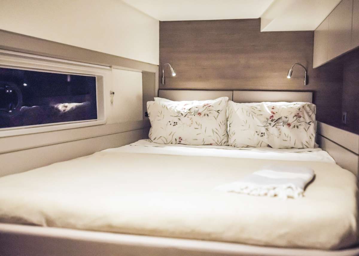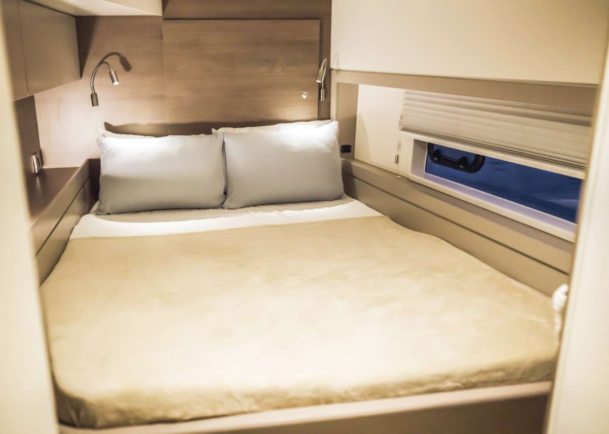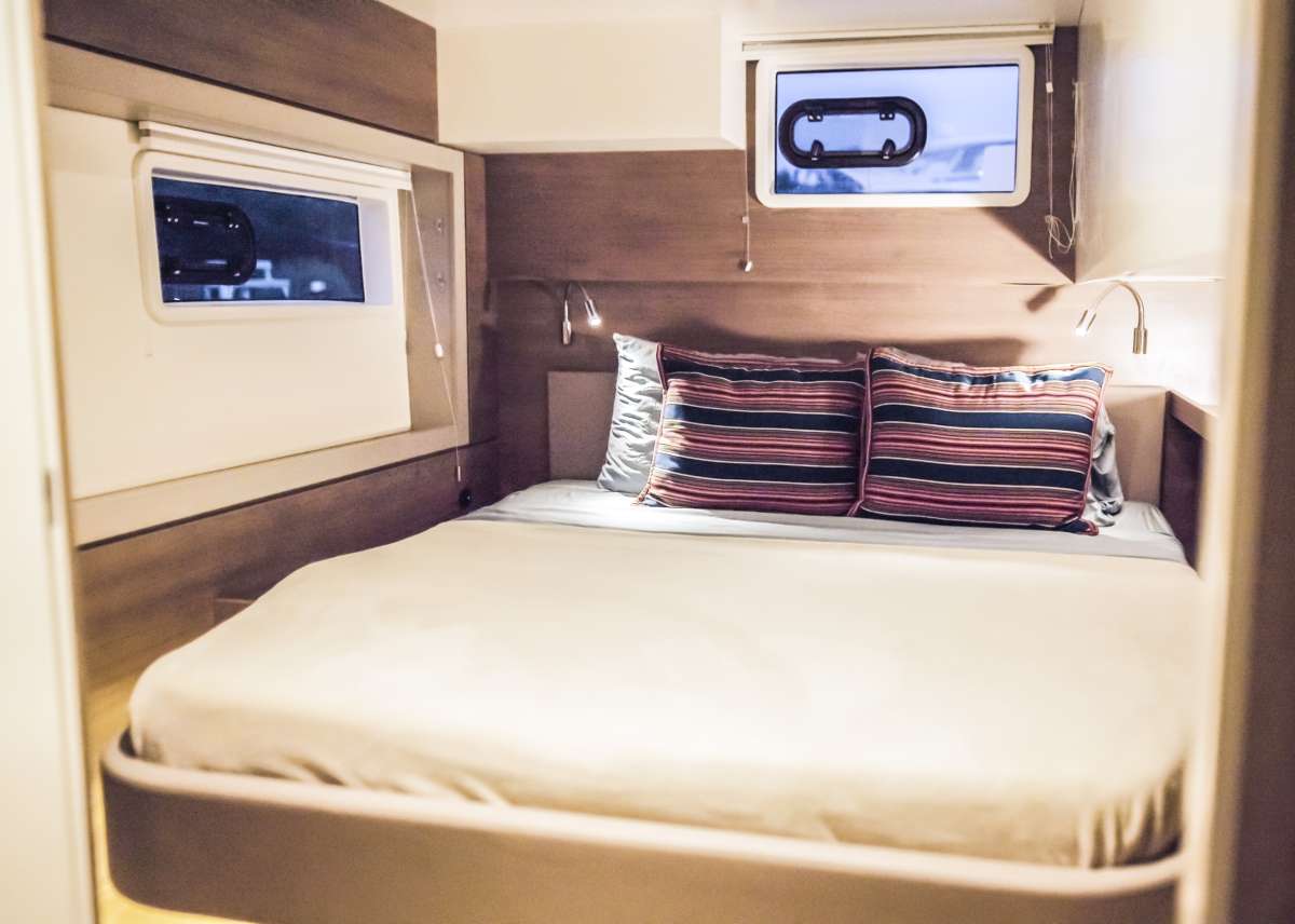 Point Clear is a modern 2023 Bali 4.4, designed for guests who want both adventure and comfort. With 3 queen cabins—each with its own ensuite bathroom—the yacht accommodates up to 6 adults in style, with additional forepeak berths available for children or teens.