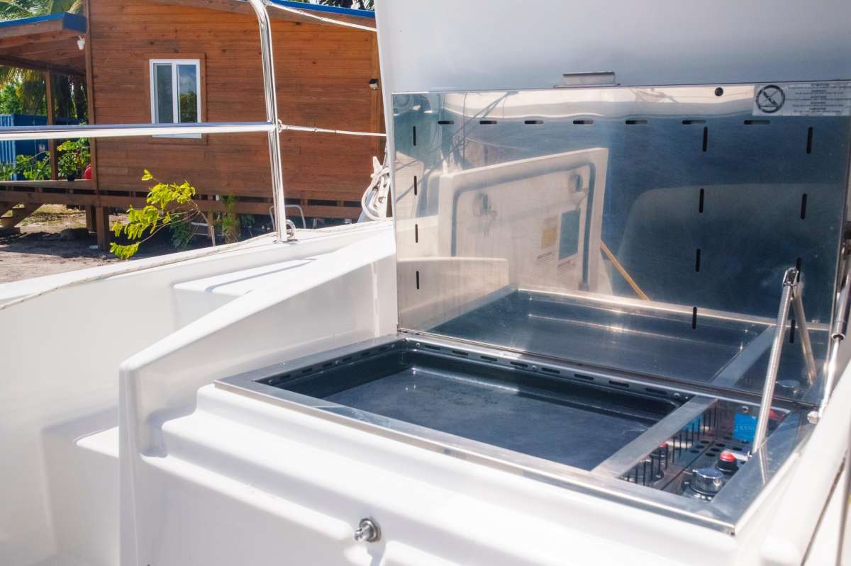 Point Clear is equipped with thoughtful upgrades to enhance every charter. Guests will appreciate full air conditioning throughout, Starlink internet for reliable high-speed connectivity, and an efficient solar and generator system. A full-size fridge and freezer with icemaker, water maker, and electric fresh-water toilets provide convenience at sea, while the open-plan Bali design maximizes airflow and natural light.
