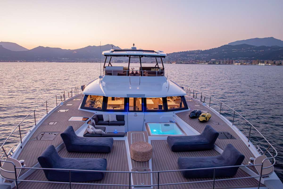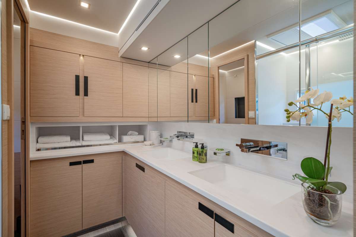 4 cabins: a Master suite with a double bed and en-suite bathroom, a VIP suite also with a double bed and en-suite, and two additional cabins, each featuring a double bed and private en-suite