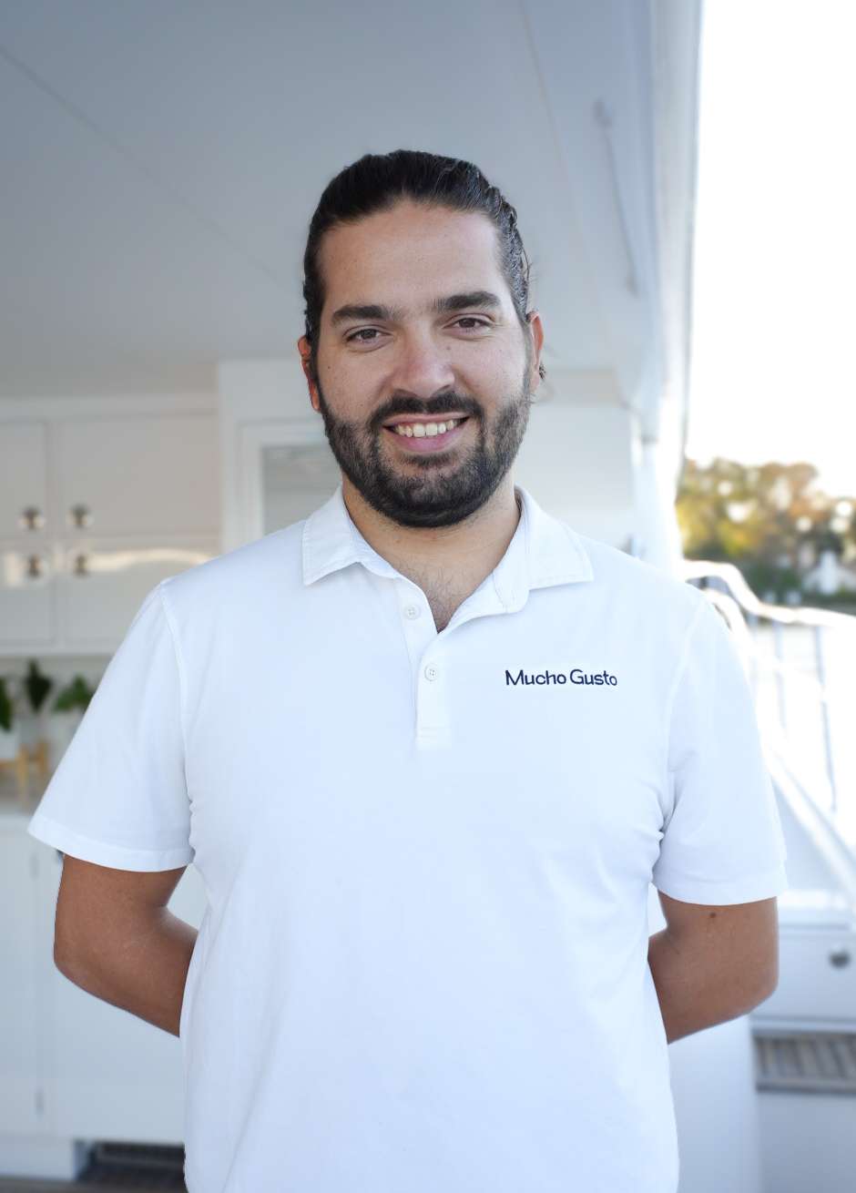 Mario was born and raised in South Africa and has always been a people person with a knack for problem-solving. After studying hospitality management, he trained across luxury hotels, fine-dining restaurants, and even South Africa’s iconic Blue Train. His love for the ocean eventually drew him to yachting, where he earned his Yachtmaster certification and discovered his passion for life at sea. Calm, capable, and endlessly resourceful, Mario keeps Mucho Gusto running seamlessly — whether he’s at the helm, behind the bar crafting his signature “cocktail of the day,” or fixing something before anyone else even knows it’s broken. He’s also a certified Dive Master, trained electrician, barista, and mixologist — and when he’s not on the water, you’ll usually find him restoring classic cars.