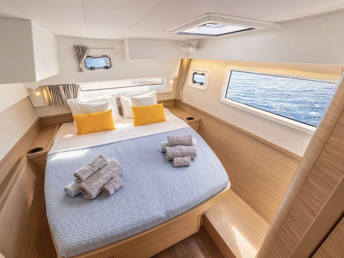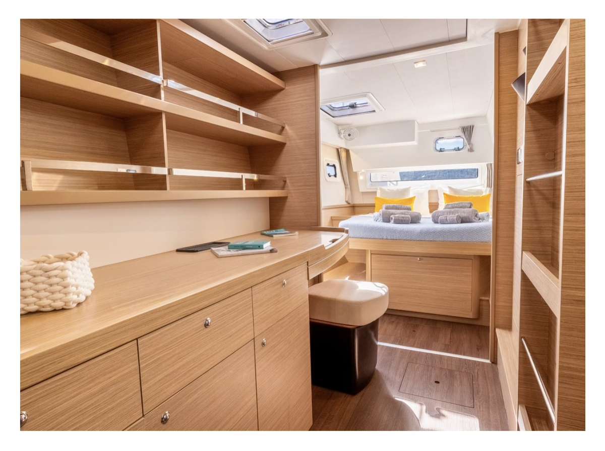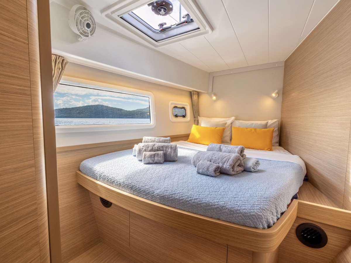 1x Master Suite with large ensuite facilities 2x double bed cabins with ensuite 1x Crew berth & head in forepeak