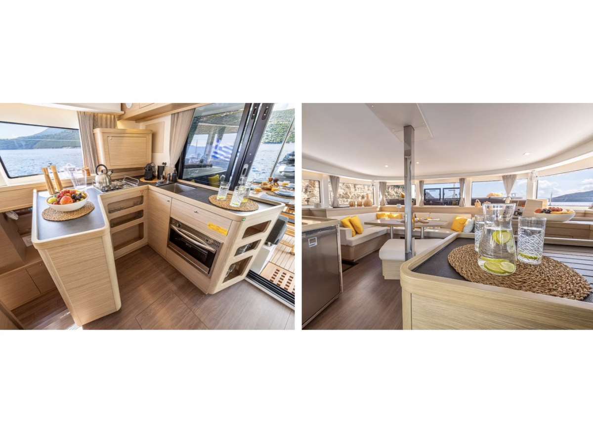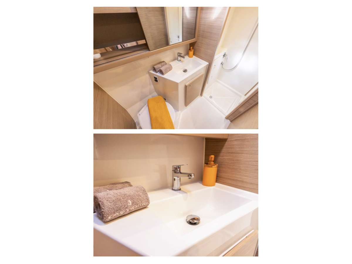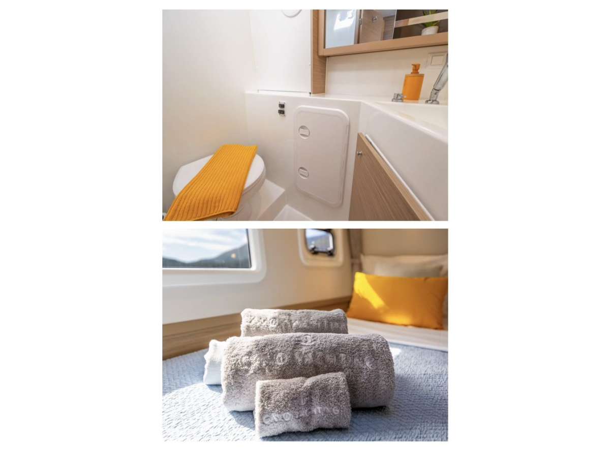 1x Master Suite with large ensuite facilities 2x double bed cabins with ensuite 1x Crew berth & head in forepeak
